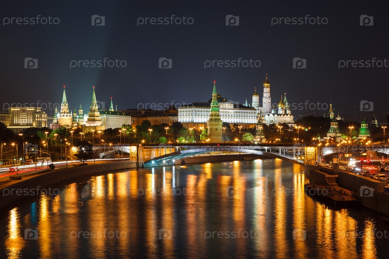 Ночной вид Московского Кремля в России