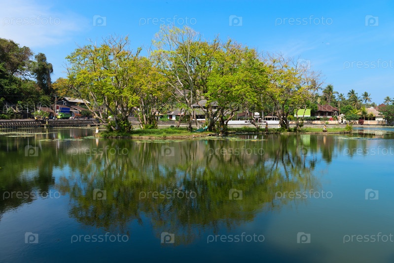 Тропическое озеро с большим зеленым деревом