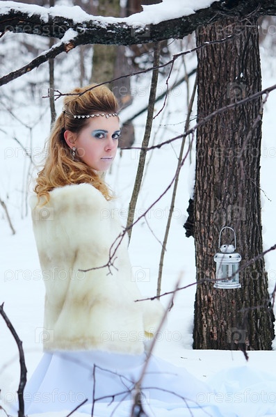 Портрет красивой девушки в зимнем лесу