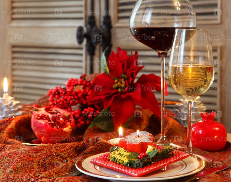 Рождественский натюрморт с белым и красным вином