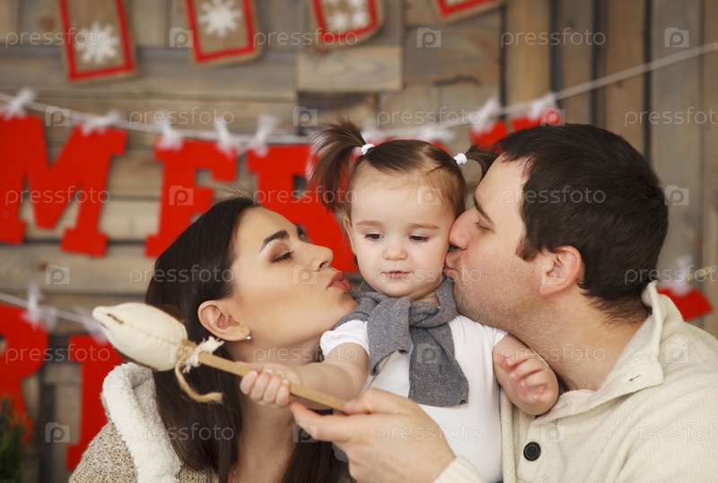 Счастливая семья с годовалой дочерью