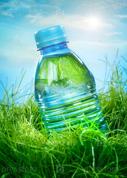 Бутылка воды на траве