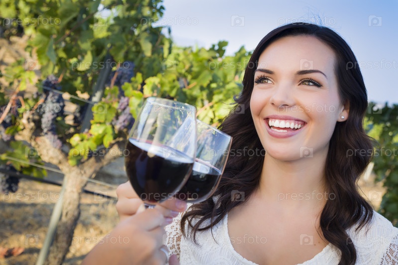 Молодая женщина наслаждается прогулкой и вином на винограднике