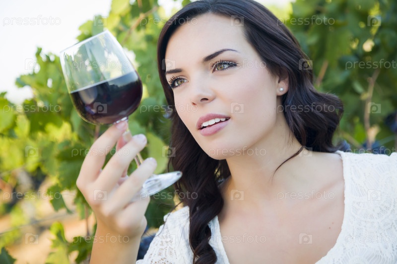 Молодая женщина наслаждается прогулкой и вином на винограднике