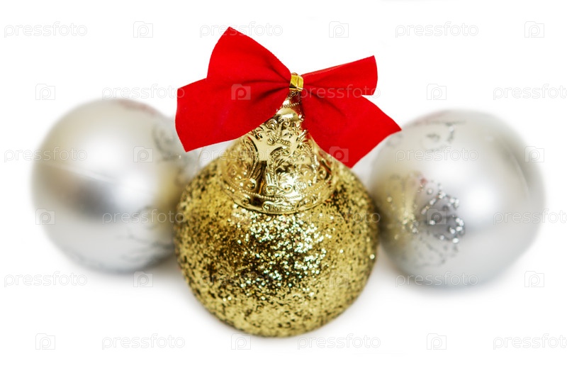 Три новогодних шара, изолированных на белом фоне
