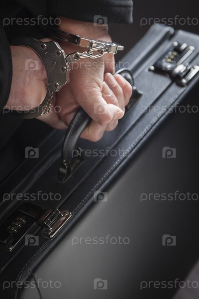 Женщина в наручниках с портфелем