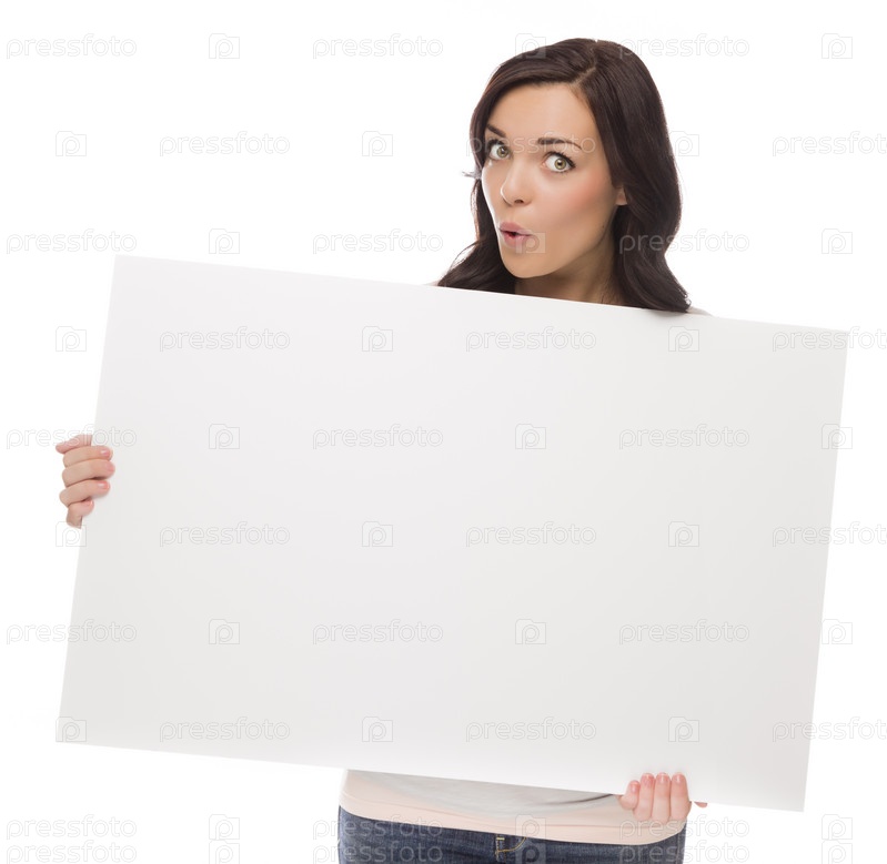 Красивая девушка с чистым плакатом на белом фоне
