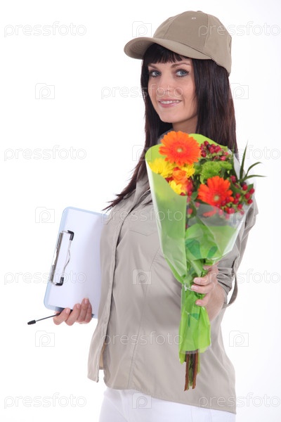 Женщина с букетом цветов