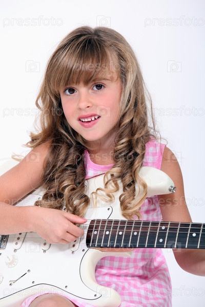 Белокурая девочка играет на басу