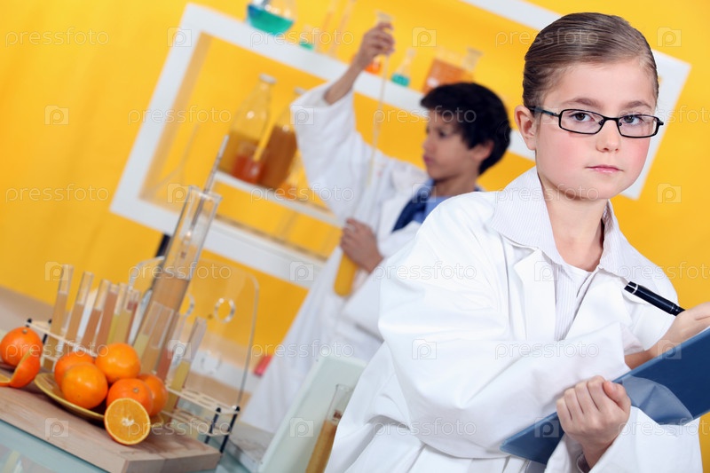 Двое детей в лаборатории
