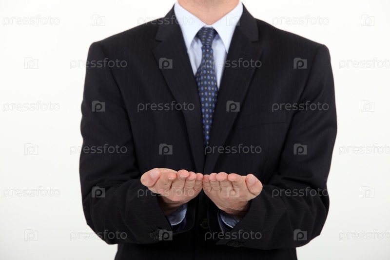 Бизнесмен с вытянутыми ладонями