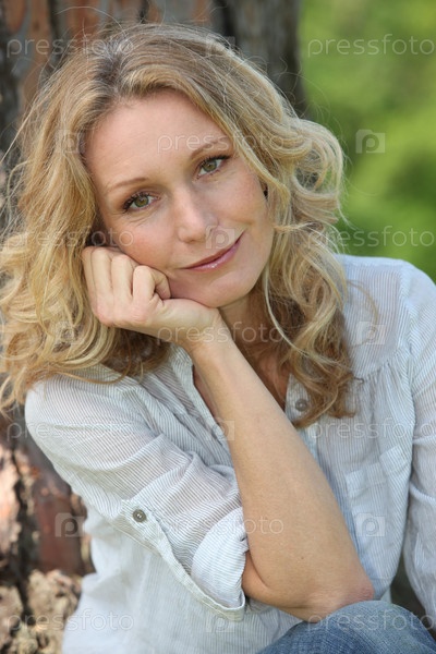 Женщина улыбается под деревом