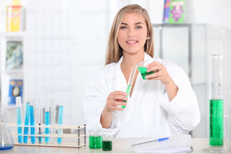 Молодая блондинка в лаборатории