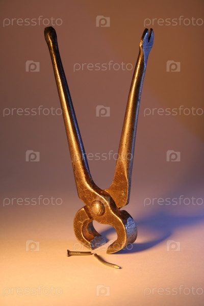 Металлические клещи в форме буквы V и сломанный гвоздь, концепция победы
