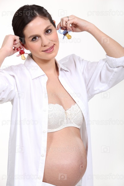 Беременная женщина держит пустышки