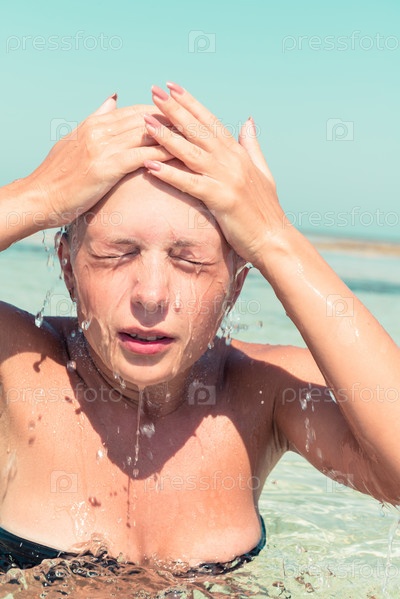 Молодая женщина моет лицо