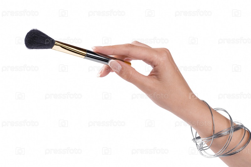 Кисточка для макияжа в женской руке