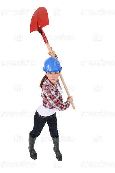 Женщина, держащая лопату над головой