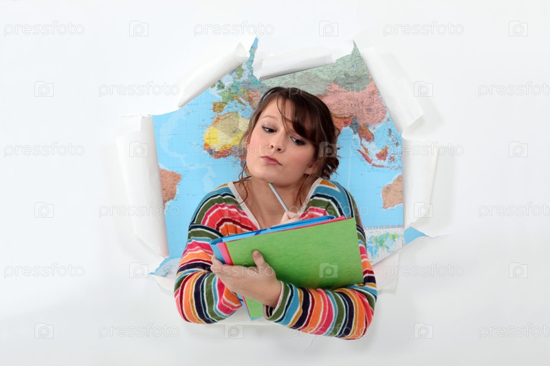 Женщина изучает географию