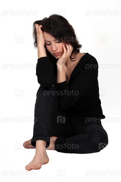 Симпатичная печальная брюнетка