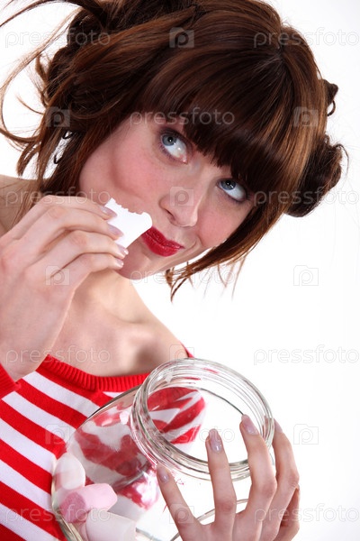 Женщина ест конфеты