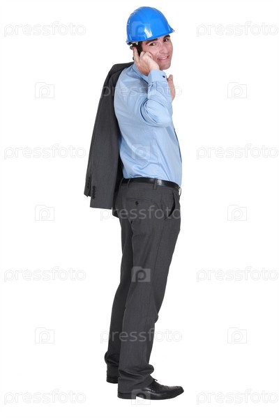 Архитектор стоит на белом фоне