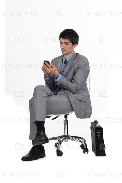 Бизнесмен смотрит на сотовый телефон