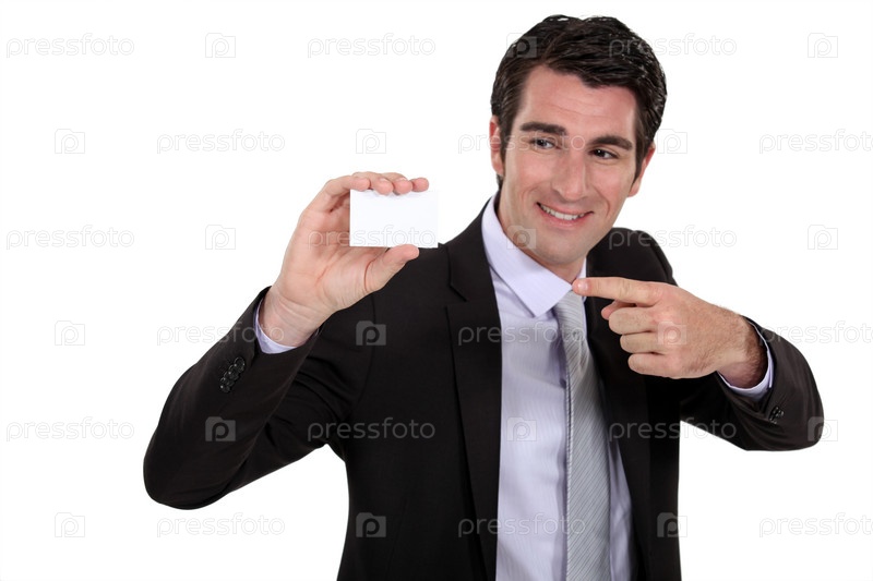 Человек, указывающий на визитную карточку