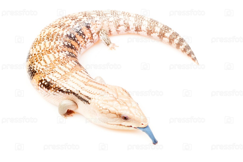Скинк с голубым языком на чистом белом фоне