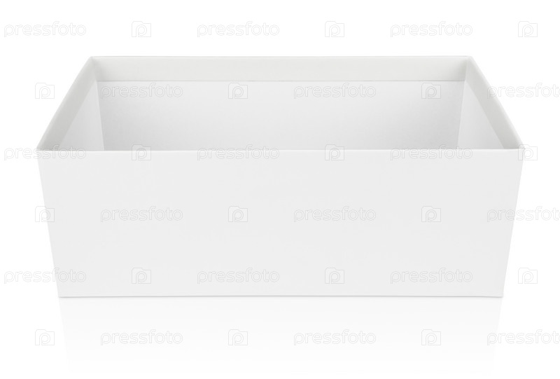 Открытая обувная коробка, изолированная на белом фоне
