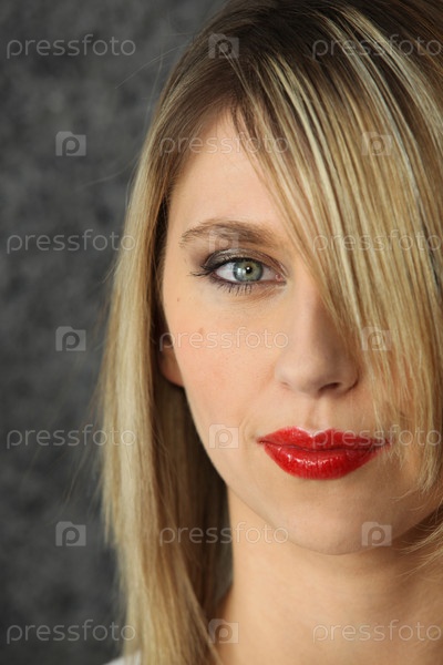 Симпатичная блондинка с красной помадой