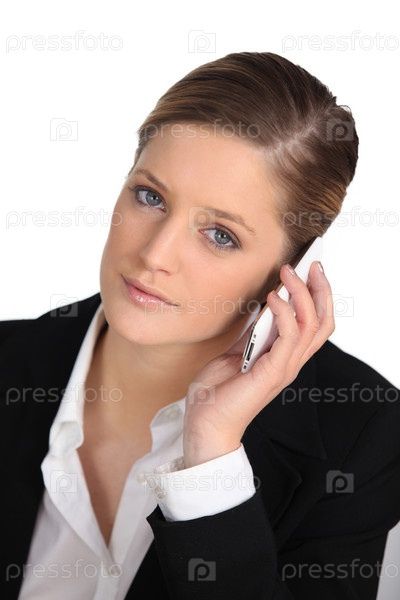 Молодая деловая женщина слушает мобильный телефон