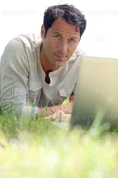 Человек, работающий на траве