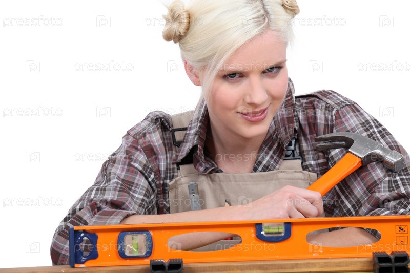 Женщина-рабочий с уровнем