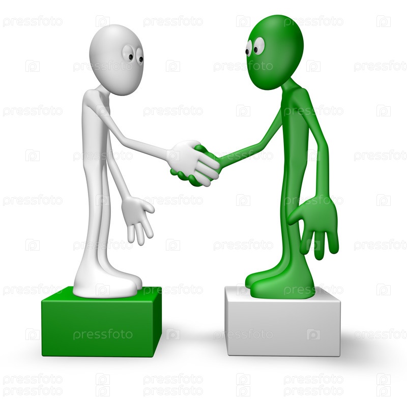 Мультипликационные человечки пожали друг другу руки. 3D иллюстрация