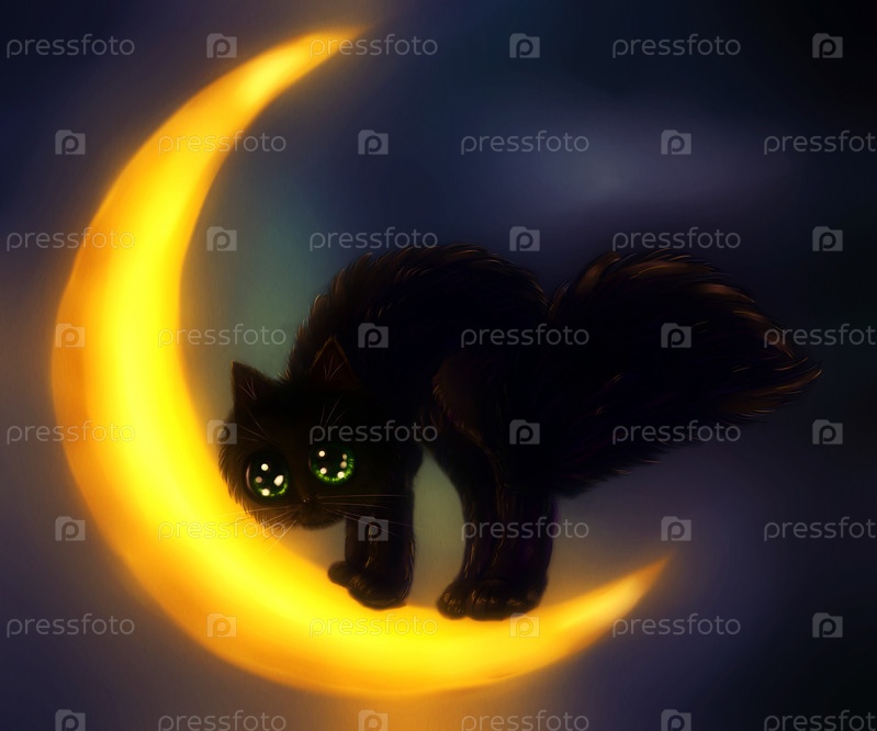 Черная кошка и луна