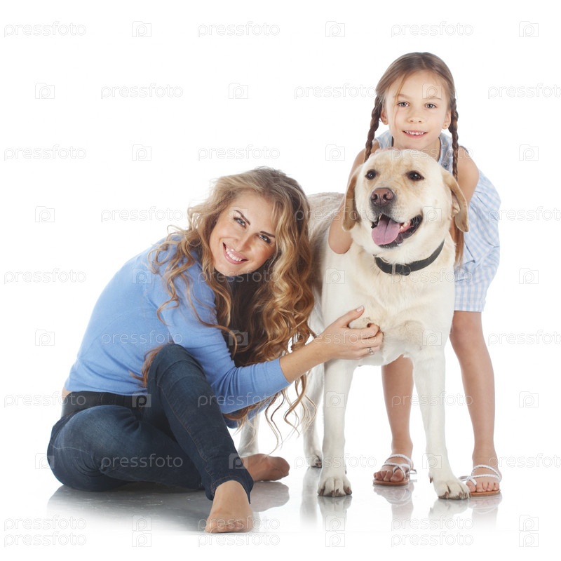 Женщина и девочка с собакой
