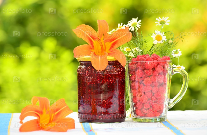 Малиновое варенье и свежие ягоды