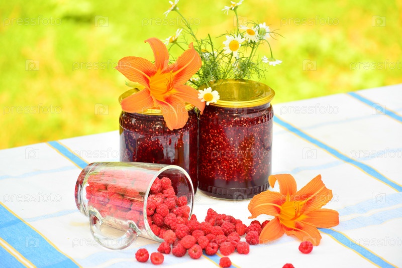 Малиновое варенье и свежие ягоды