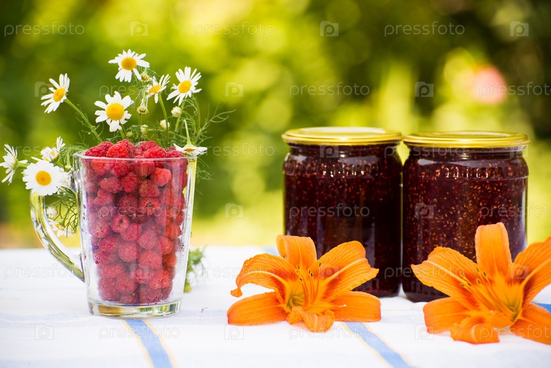 Малиновое варенье и свежие ягоды