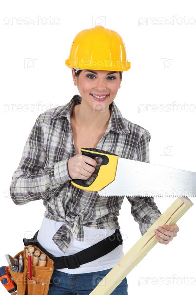 Женщина-плотник с ручной пилой