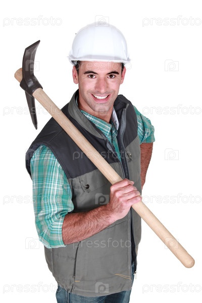 Молодой мужчина держит кирку