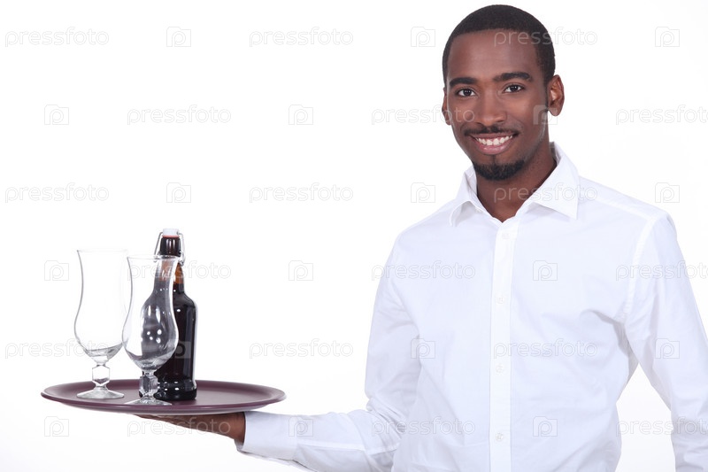 Официант с пивом на подносе
