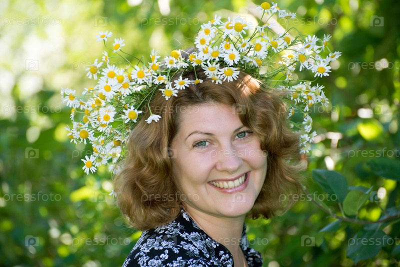 Женщина с венком из ромашек на голове