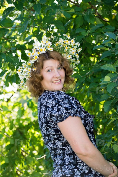 Женщина с венком из ромашек на голове