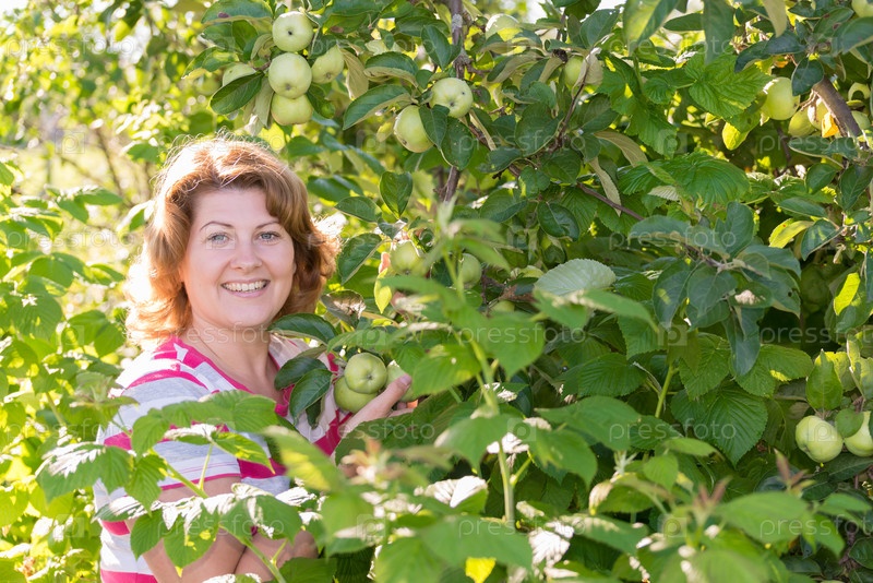 Женщина в яблоневом саду