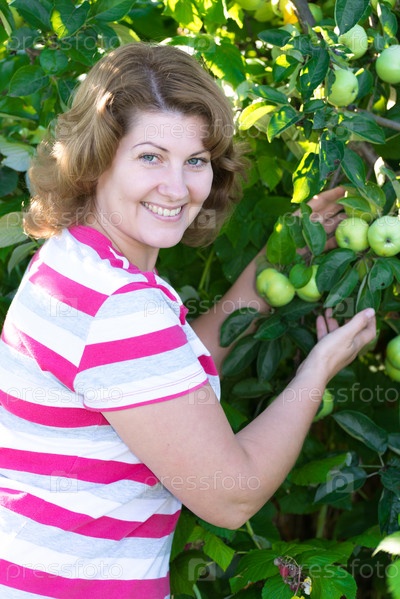 Женщина в яблоневом саду