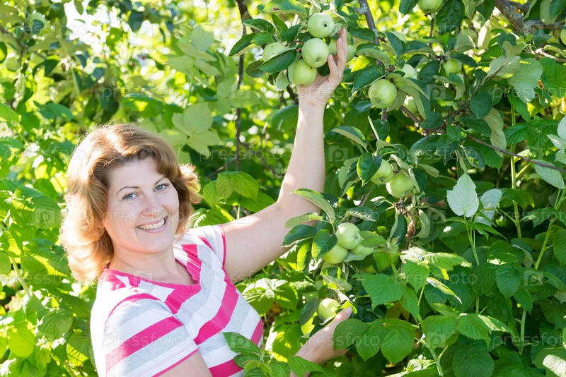 Женщина в яблоневом саду