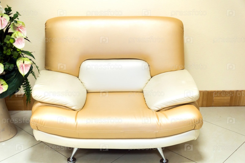 Бежевое кожаное кресло в интерьере