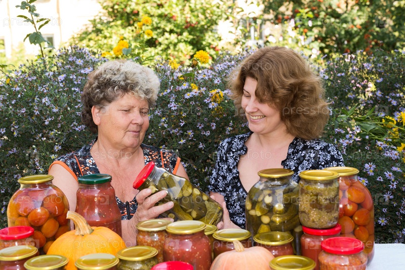 Две женщины и домшние овощные консервы